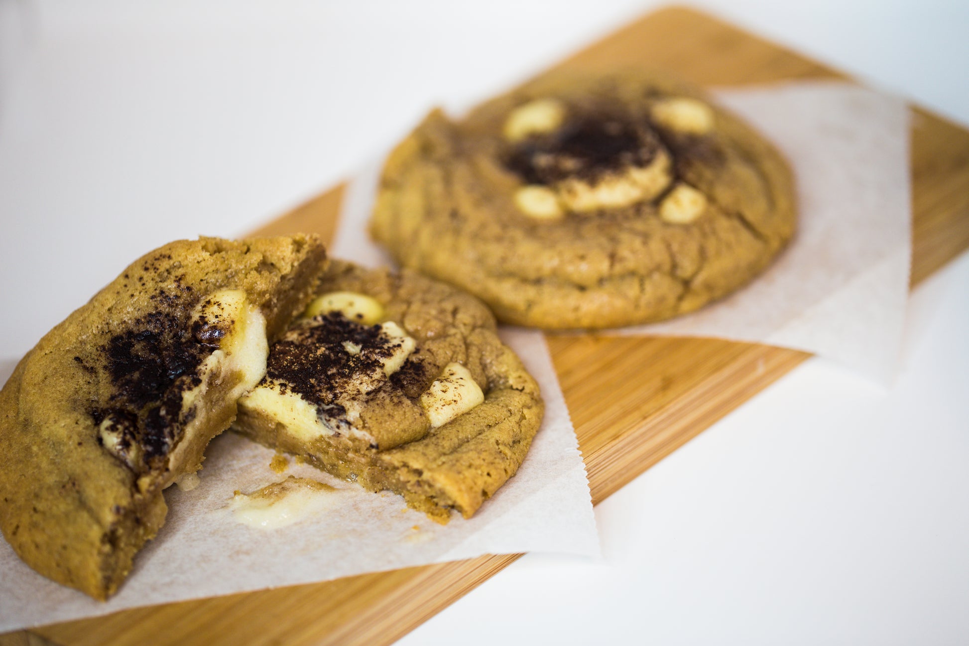 Dit zachte, chewy koekje van ±100 gram heeft een heerlijke swirl van kaneel en door het deeg. Gevuld met een romige creamcheese-frosting met een lichte hint van kaneel, afgewerkt met een cacao.