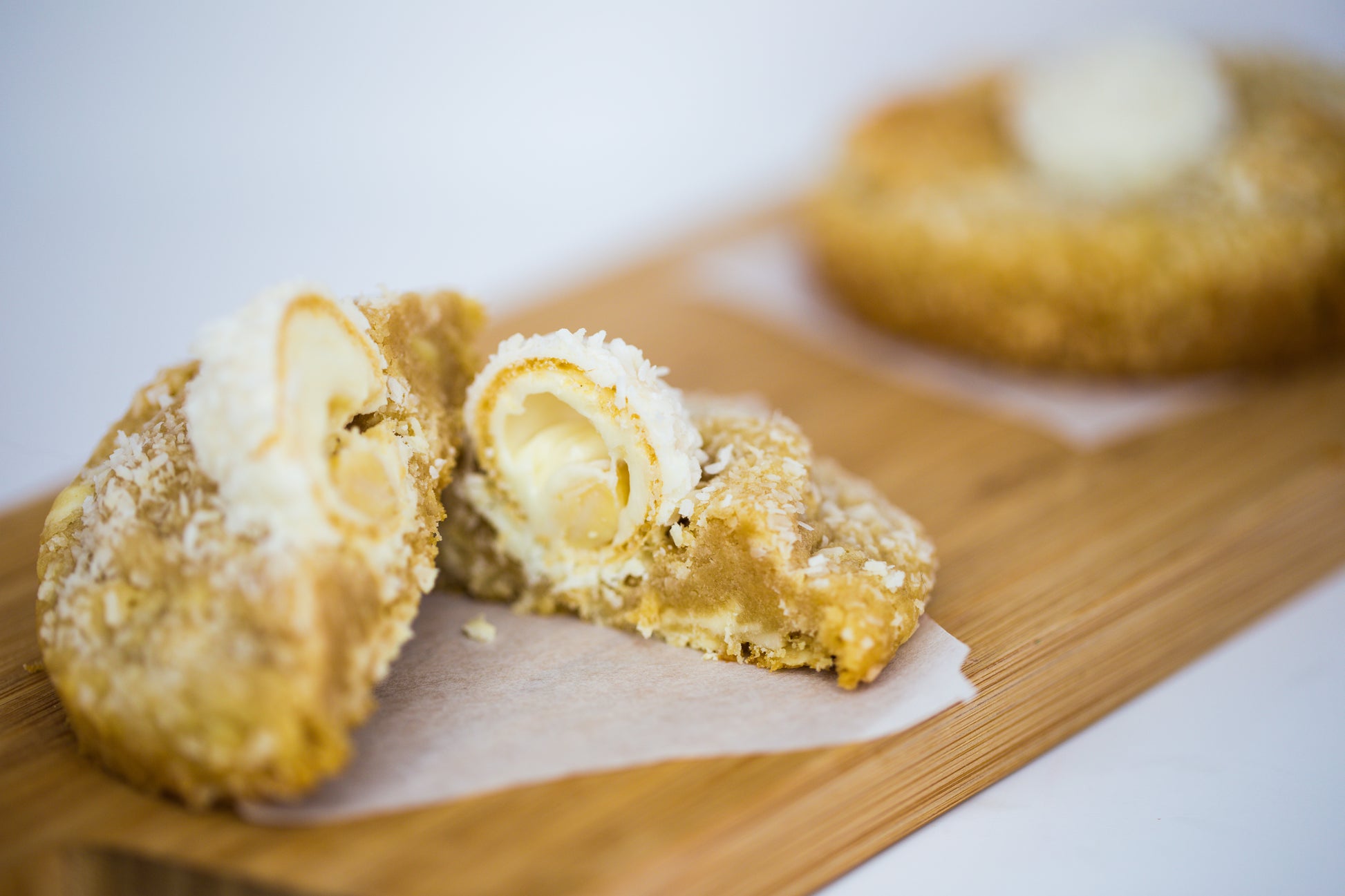 Dit zachte, chewy koekje van ±100 gram is gevuld met stukjes Raffaello en is gevuld met een heerlijke witte amandel creme. het deeg wordt gemaakt met een vleugje Monin kokosnoot likeur en kokossnippers en stukjes amandel.